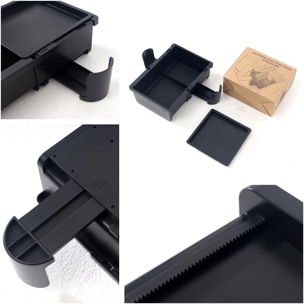 IKUESM Product Name: Small General Purpose Storage BoxModel: IKUESM - A11Package Includes: Storage box*1Top lid of storage box*1Packing *1 Multifunctional Car Organizer Product Description:Universal, suitable for different car modelsStowable cup holder, more beautifulAdjustable box width sizeMulti-scenario use, can be used in the center console, rear seat, seat back, campingNo need to strap, direct useProduct Description:Note: Due to the different monitors and light, the picture may not reflect the actual color of the item. Thank you for your understanding.- Due to the different versions of vehicles in different areas, we can't 100% guarantee to fit your car, please refer to our pictures and check your car first.- In case of customs problems, please contact customs in time to avoid return or exchange.- When you receive your order Please check the item for damage and make sure it can be installed and used properly before using or modifying it.- If you do not receive the package as we described, please contact us directly as soon as possible, we can refund or resend the item according to your choice.- If you have any questions, please contact us directly as soon as possible, we promise to reply you and solve the problem within 24 hours! Our customer service staff welcomes you to send us an email. We strive to answer all questions as quickly as possible.