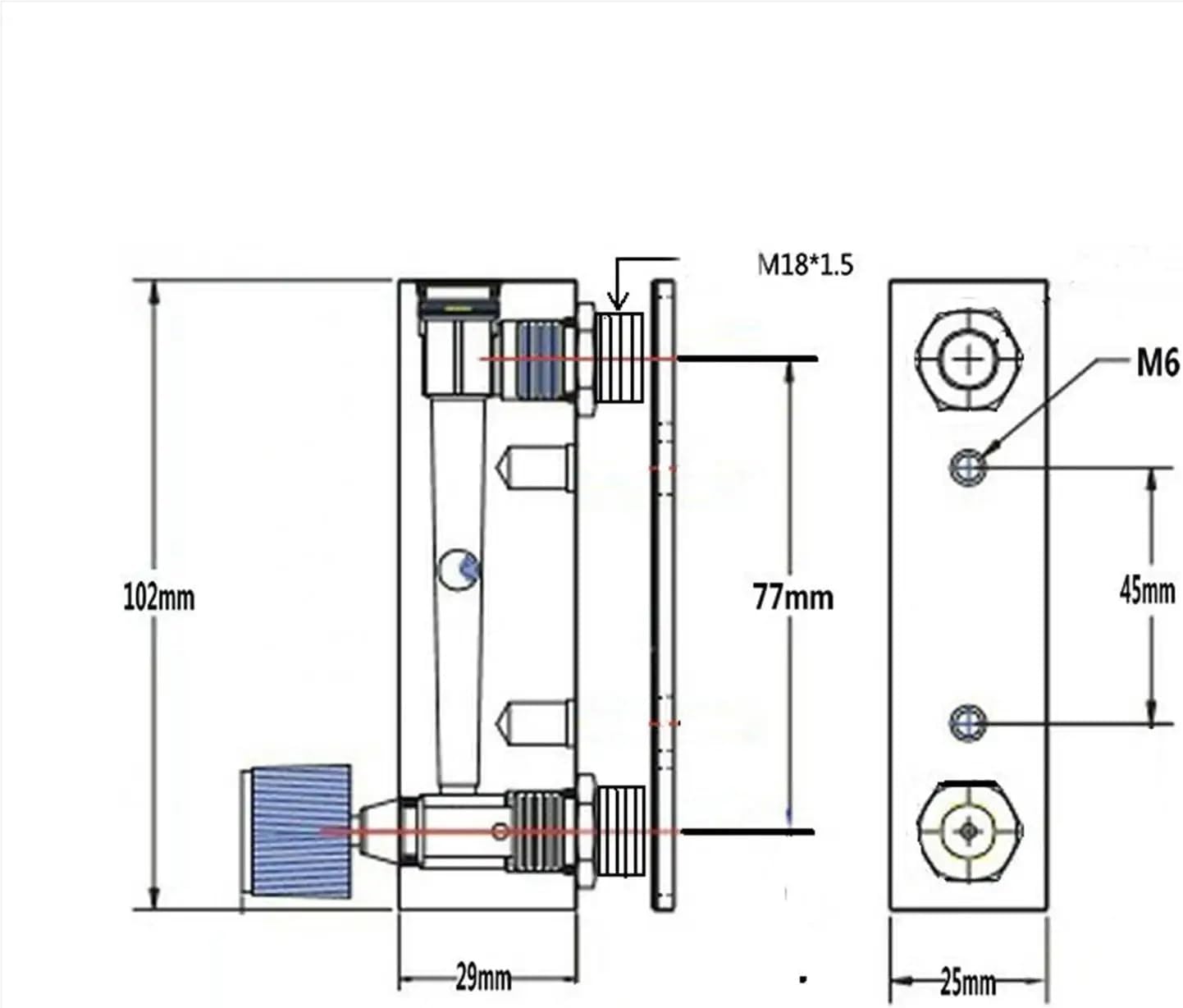 Air Flow MetersMaterial Of BodyAcrylicOverall Length102mmPort Center To Center77mmInstallation Center To Center45mmMax Pressure1 MpaWorking temperature0~60°CAccuracy Class+/- 5%Applicable MediumWater,Non-corrosive LiquidThreadM18x1.5mm Male,1/4 BSPP FemaleEach bid for 1 PC!