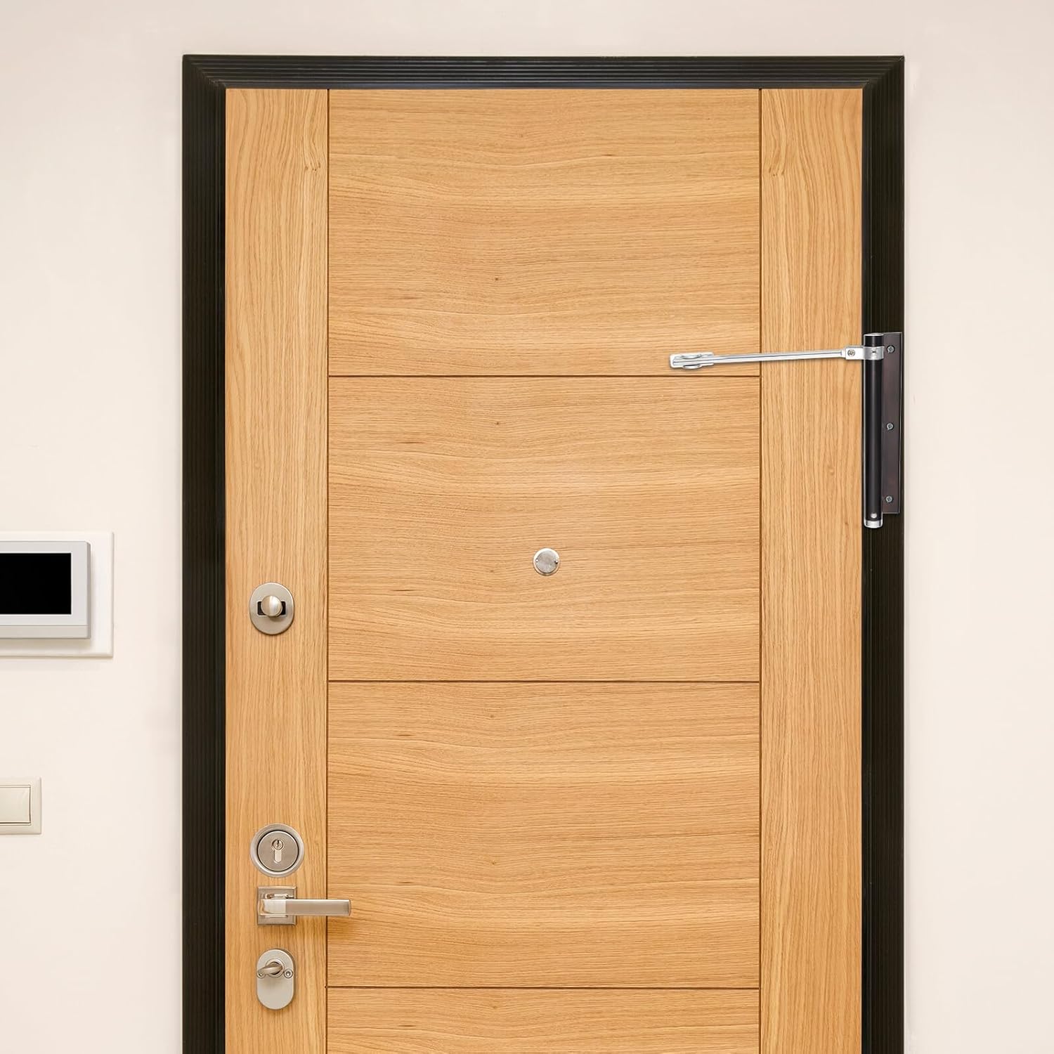 • Automatic mounted spring door closer--automatic closing and latching, maintaining quiet and security,automatic interior door closer
