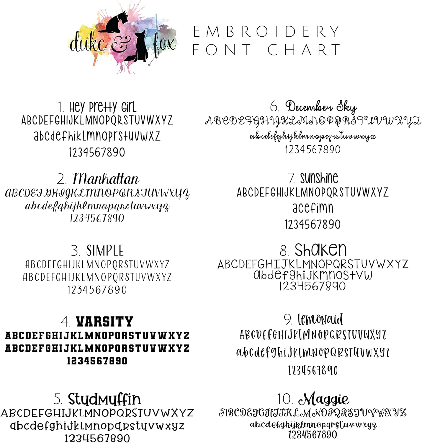 Duke & Fox Dog Collars are handmade in the USA. Whether choosing from a traditional dog collar, embroidered dog collar, or engraved buckle dog collar, you’ll find a great selection to choose from. Duke & Fox personalized dog collars come in a variety of unique styles and patterns. Our embroidered collars also add to your dog's safety and your peace of mind with critical contact information should you and your dog get separated. Our collars are functional, stylish, and handmade to stand out and express your pup's personality and your sense of style. Duke & Fox custom dog collars are made to order and are customized to your exact criteria. You have the option of choosing the pattern, thread colors, and font. We also offer matching leashes, bow ties, flowers, and bandanas to complete your look. Features: adjustable dog collar made with nylon/polypropylene, reinforced fabric, side release buckle, tri-glide, and welded d-ring.