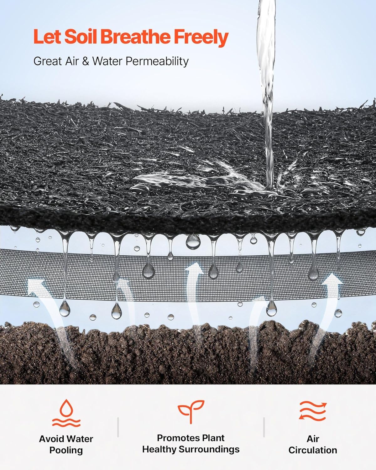 This 2-pack rubber mulch for landscaping is made from 100% recycled rubber fiber with green-energy adhesive. It's wear-resistant, weatherproof, and reinforced with backing to prevent tearing, requiring no special maintenance. The mulch effectively blocks weeds with a double barrier of interwoven fibers and a dense backing. Ideal for wet areas, it prevents mud splashing and slippery surfaces after rain, ensuring cleaner and more secure walkways and garden areas. The porous rubber fiber structure allows air and water to flow freely, preventing water buildup, reducing heat retention, and helping nutrients reach plant roots for healthier growth. Easy to cut and install with gardening scissors, perfect for yards, vegetable gardens, orchards, and landscaping, saving time and effort.