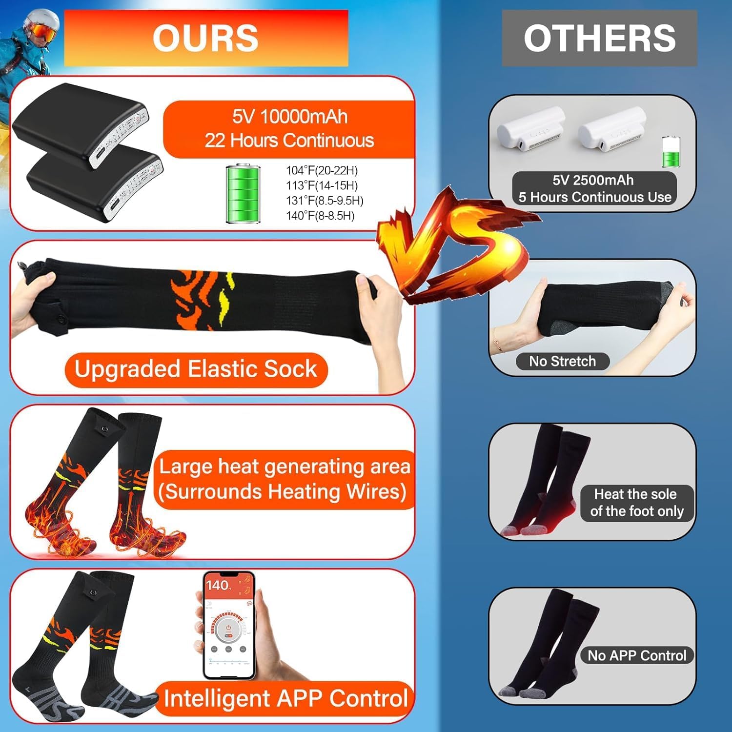 Heated Socks for Men Women,Rechargeable 10000mAh Battery Heated Socks Up to 20 Hours,360°Heating Warming, Washable Foot Warmer with APP Control for Camping Fishing Skiing Skating Hiking Outdoor Work