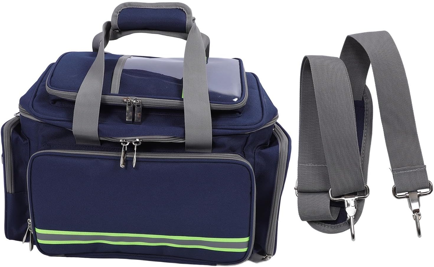 [Impact Protection & Safe Storage] Designed with thick internal padding, this storage bag safeguards your essentials from bumps and collisions. the reinforced structure keeps items secure and in pristine condition, whether you're storing tools, first aid supplies, or electronic devices during transit or outdoor activities. [Flexible Carrying Options] Equipped with a sturdy handle and detachable shoulder strap, this emergency bag adapts to your mobility needs. the innovative back strap allows secure attachment to trolleys or handlebars, making it perfect for travelers, campers, and emergency responders who need hands free convenience. [Versatile Organization Solution] Featuring multiple compartments and a transparent front pocket, this bag offers smart storage for all your emergency and outdoor gear. the spacious main compartment accommodates bulky items while pockets keep smaller essentials like instructions, maps, or documents neatly organized and easily accessible. [Durable & Weather ] Crafted from heavy duty oxford fabric, this emergency tool bag is built to withstand harsh conditions. the scratch and wear proof material ensures long lasting durability, making it ideal for rugged outdoor adventures, emergency preparedness, and everyday use in various environments. [Secure & Easy Access] Multiple zippered closures ensure your belongings stay protected while allowing quick access when needed. the thoughtfully designed pockets and compartments enable efficient organization of tools, supplies, and survival gear, making this the emergency preparedness and outdoor adventure companion. Spec: Item Type: Storage Bag Material: Oxford Fabric Size: Approx. 33 x 45 x 28cm / 13 x 17.7 x 11in Package List: 1 x Storage Bag 1 x Shoulder Strap Note: 1. The size and color may have error. 2. The product includes a bag, without emergency supplies.