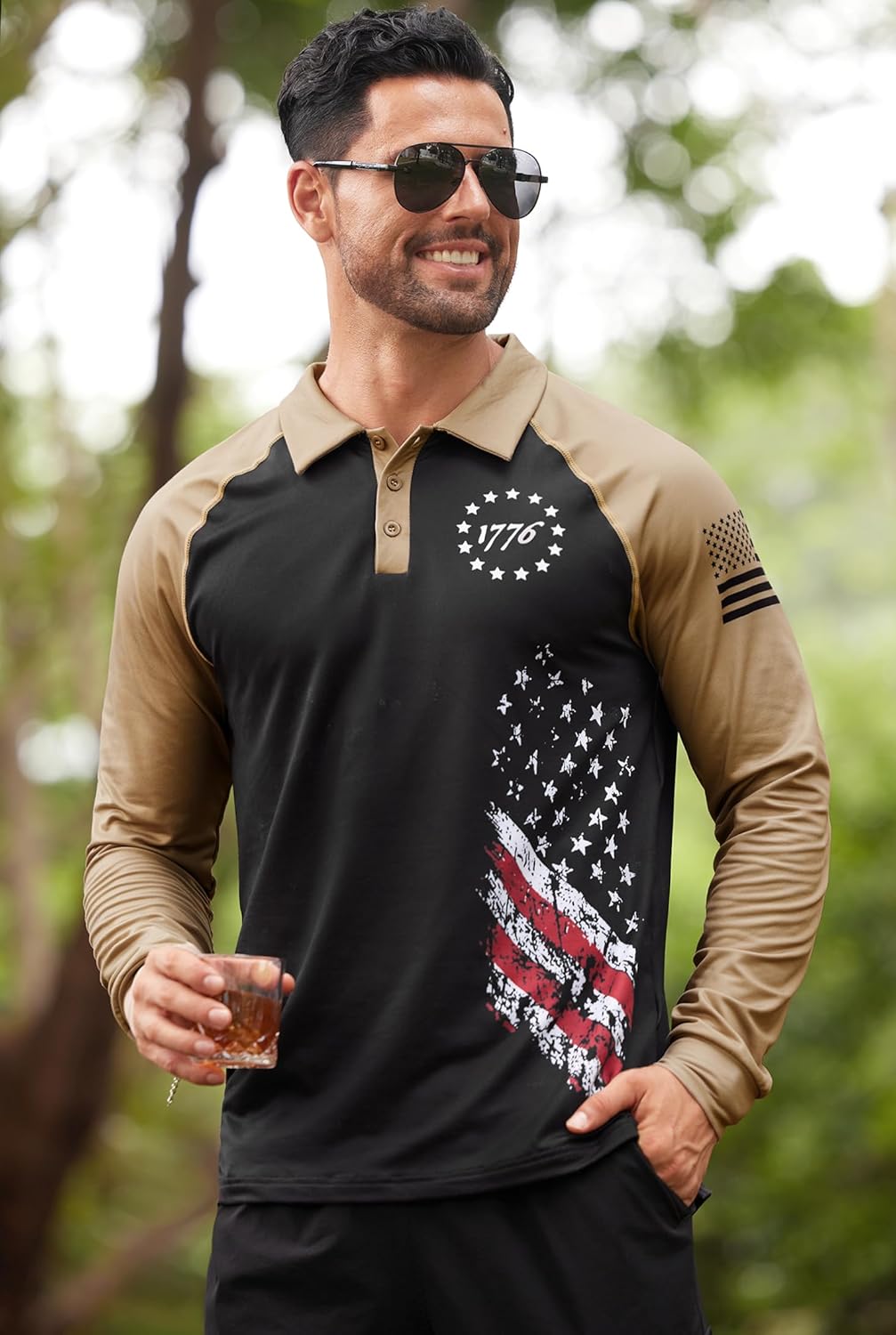 Introducing Mainfini Tactical Long Sleeve Poloshirt It is a must-have for any patriotic American who wants to show off their love for their country. Made from 95% Polyester & 5% Spandex, this shirt is perfect for any occasion, from hiking and golfing to attending Independence Day and Memorial Day celebrations. Featuring an iconic American Flag design with red, white, and blue stripes and stars, this Tactical Poloshirt is a true symbol of patriotism. The quick-dry fabric is perfect for hot and humid conditions, making it great for outdoor activities like fishing, hunting, and climbing. This Independence Day Poloshirt features a classic button-up design with a soft and comfortable collar that won't irritate your skin. The shirt is available in both regular and slim fits, ensuring a comfortable and flattering fit for everyone. Not only is this Military Patriot Poloshirt perfect for showing off your patriotism on Independence Day and Memorial Day, but it is also a versatile option for a range of activities. Whether you're playing tennis, hiking, traveling, or simply running errands, this shirt is the perfect choice. Easy to care for and machine washable, this Memorial Day Poloshirt is a convenient and durable addition to any wardrobe. With its comfortable fit, iconic design, and patriotic elements, it will surely become your closet's go-to item. Show your love for the USA in style with our Mainfini Tactical Poloshirt.