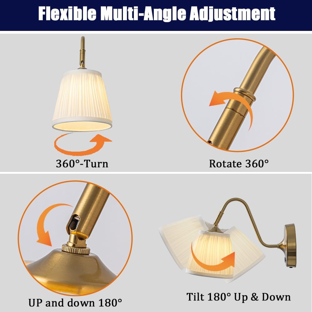 | Embellishment Feature | Brass Finish, Pleated Shade, Swing Head |