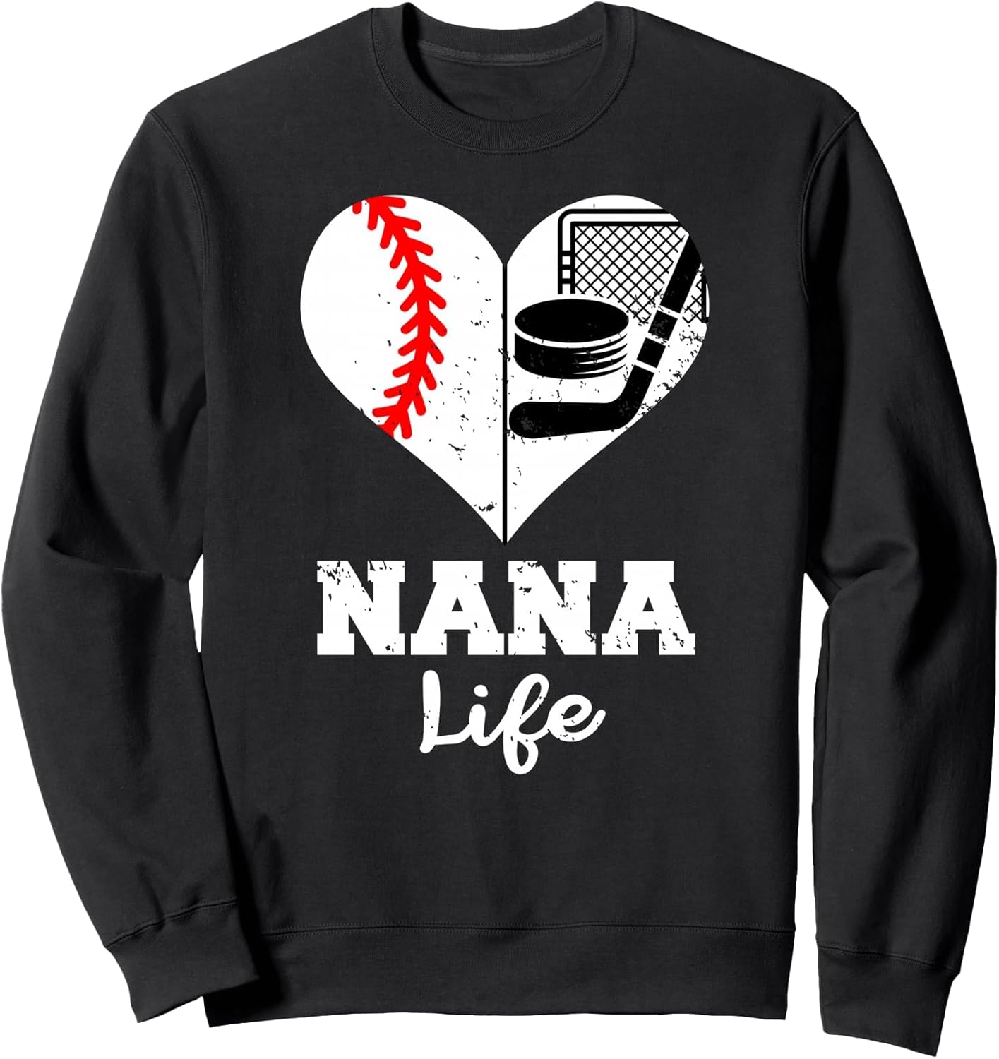 | Item Type Name | Nana Life Heart Funny Baseball Hockey Nana Sweatshirt, Adult Unisex, Dark Heather Grey, XX-Large |