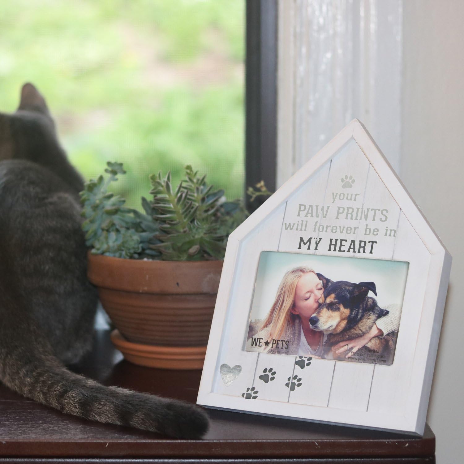 The loss of a pet can be devastating, here's a way to remind you of the spirit that once filled your home with so much joy and happiness. They may be lost but they'll never be forgotten. Simple white house shaped picture frame from We Pets by Pavilion. Matches perfectly in almost any home.
