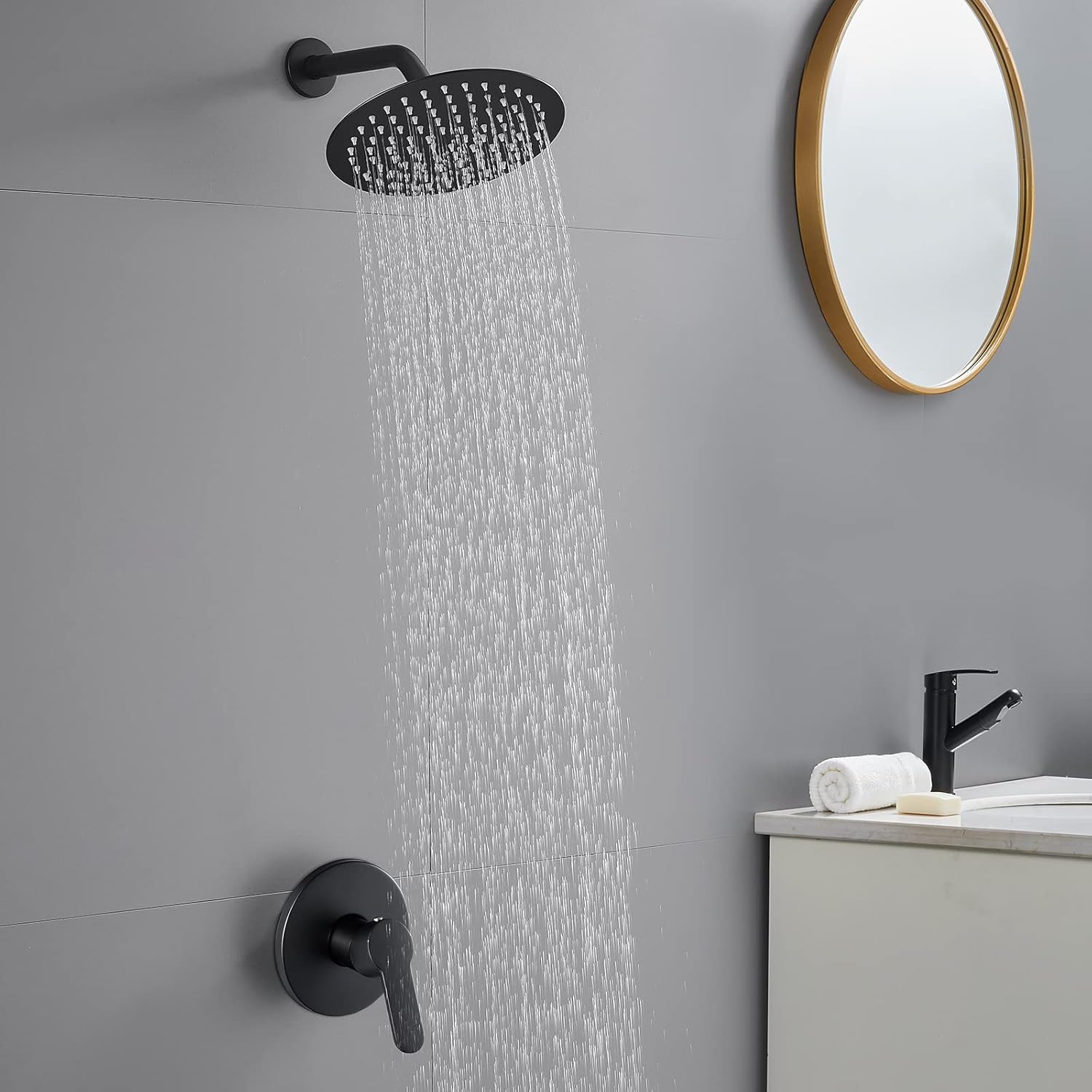 | Included Components | Shower faucet with vavle body * 1pcs ,Trim plate * 1pcs ,Faucet handle * 1pcs ,Shower arm cover plate * 1pcs ,SUS 304 Shower arm * 1pcs ,SUS 304 8 inch overhead shower * 1pcs ,Accessories installation package*1pack,Manual * 1pcs |