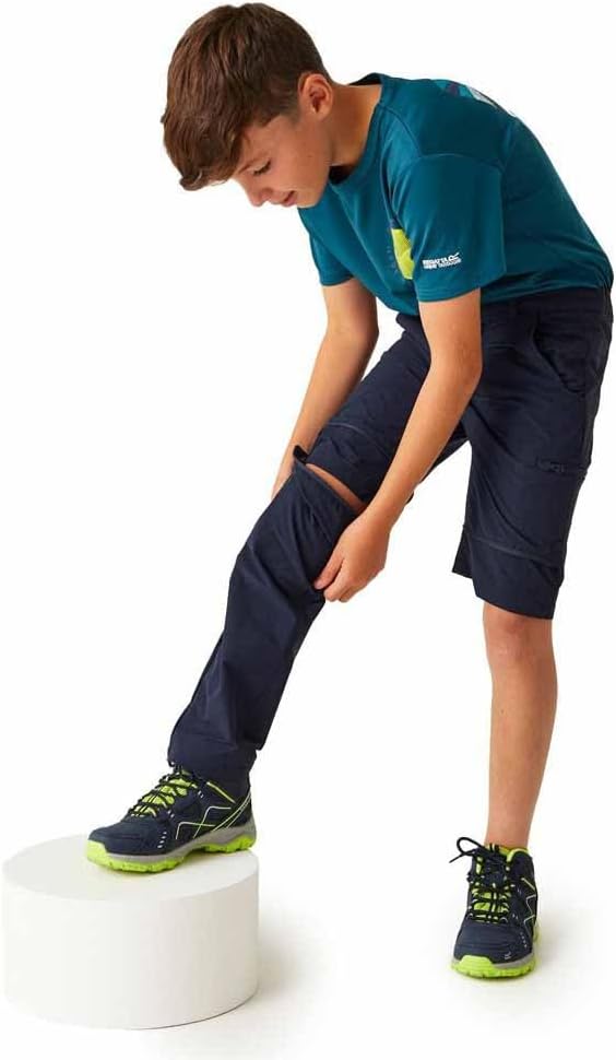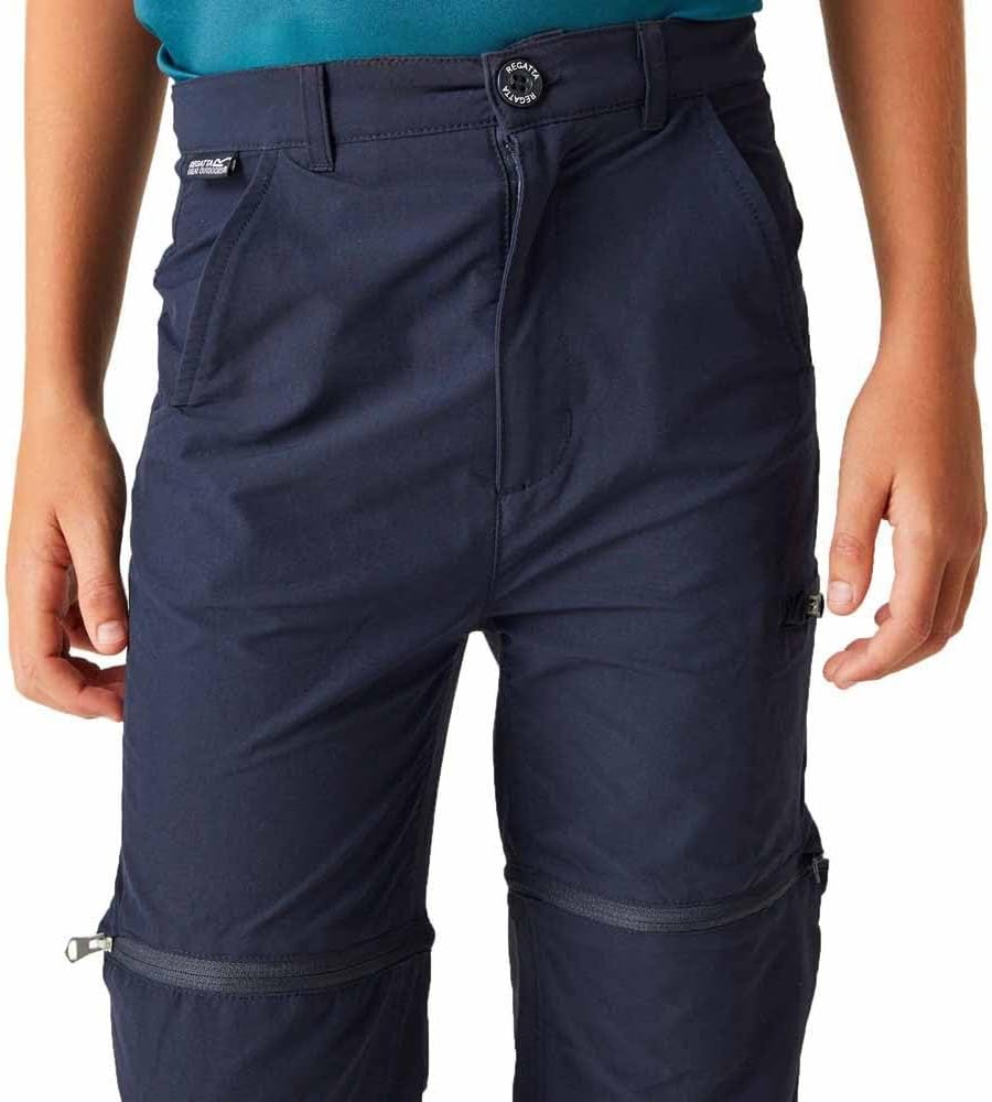 The Junior Highton Stretch Zip-Off Trousers from Regatta are perfect for outdoor adventures. The kids' trousers feature Isoflex stretch fabric to keep little ones mo VIng with ease. With the water-repellent finish they'll see off light showers. The part-elasticated waist on the kids' walking trousers moves with them to create a comfortable fit. When the sun comes out, zip off the legs to create summer shorts.