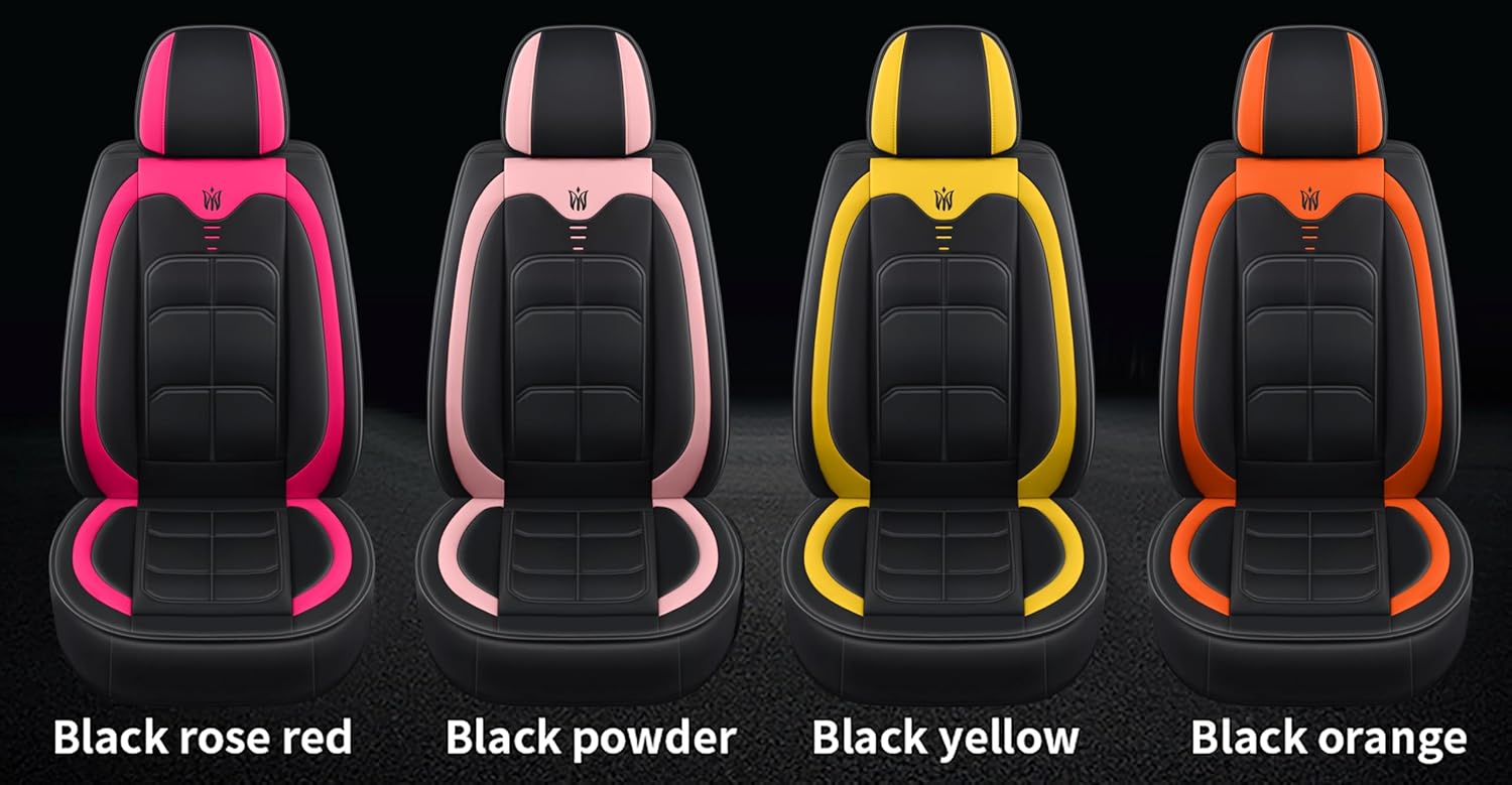 Description: This is universal car seat cover,according to our selling experience,it is fit for more than 99% of 5 seats car. The 3 rear seats cover is detachable(joining with zip fastener),so you can recline the rear seat as normal,please do not worry. We are professional supplier of car accessories,We have various styles of seat covers,please visit our store to find more. If you have any other question about product,just feel free to contact us. NOTICE:DOES NOT FIT A PICK-UP TRUCK,SPROTS CAR with 2 SEATS or 4 SEATS,PLEASE NOTE IT. We provide installation instruction,will send you via amazon email,please contact us after receive the product. We accept return and will refund if it does not fit your car,so feel free to order it. You will receive the package with installation instruction in paper,if you need installation instruction of PDF or video,please contact us via amazon message. Material: Breathable PU leather Color:Black&pink,Black&yellow,Black&orange,Black&rose. specific size: Front row: length: 52 cm/20.4inch,width: 48 cm/18.8inch backrest,height: 60 cm/23.6inch Head height: 20 cm/7.8inch ,Cap width: 27 cm/10.6inch Rear row: Length: 133 cm/52.3inch,Width: 45 cm/17.7inch,Backrest height: 60 cm/23.6inch Head height: 20 cm/7.8inch,Cap width: 27 cm/10.6inch Packing size: 55 cm/21.6inch * 65cm/25.5inch * 25cm/9.8inch Suitable for: 5 seats car, all season Package: 2pcs Front backrest 2pcs Rear row sitting 2pcs Rear backrest Rear armrest