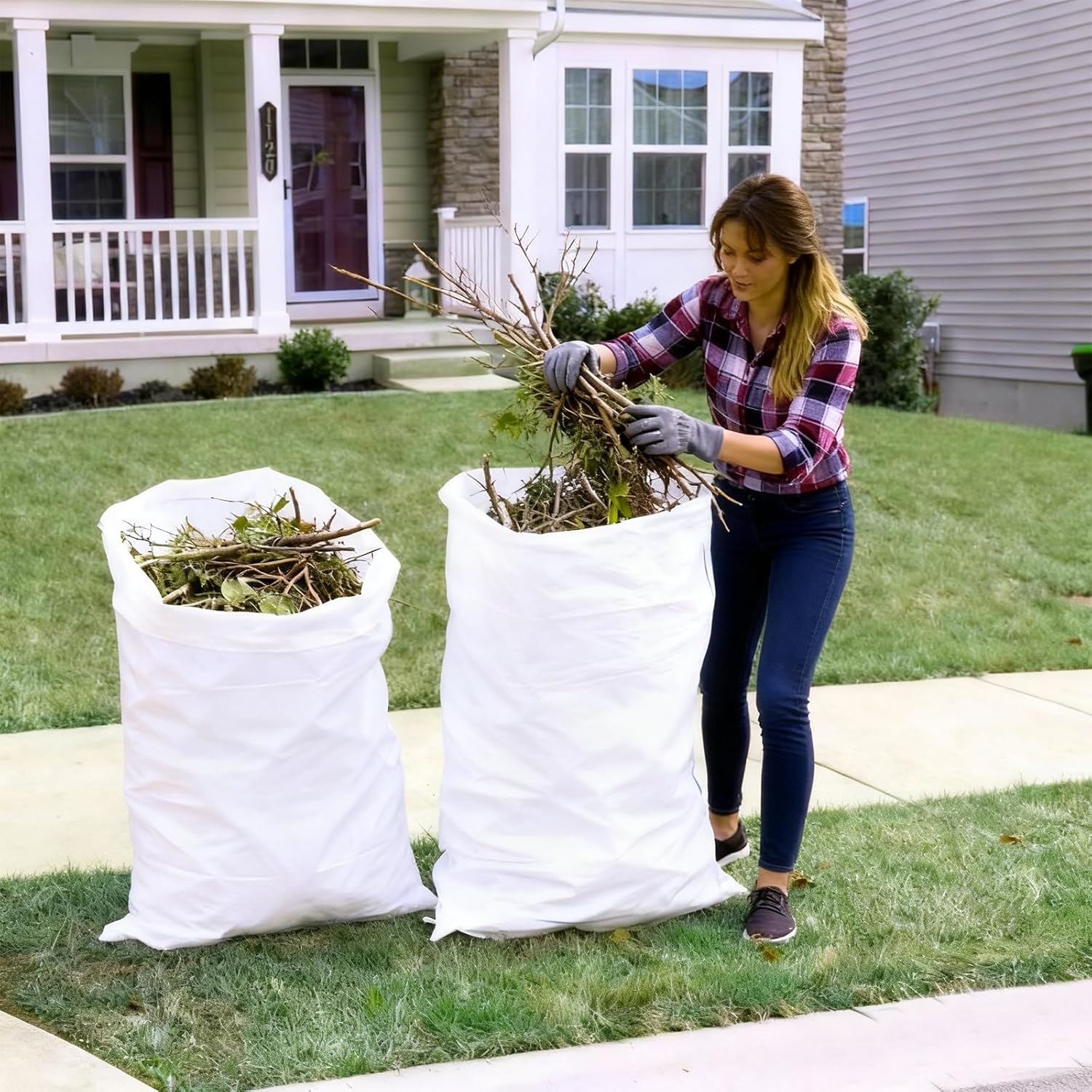 Features: Reliable for Sharp and Heavy Debris: Specifically designed to handle sharp-edged materials like broken tiles, glass, and metal scraps, these woven reusable yard waste bags prevent sudden rips or spills, keeping cleanup safe and hassle-free. Saving Space: These woven garbage bags fold flat when not in use, making them convenient to store in your toolbox, car, or storage area. Always have reliable heavy-duty bags on hand without taking up extra space. Specifications: Material: polypropylene woven Color: white Size: approx. 31.5 x 47.2 inches (80 x 120 cm) Package includes: 40 x Heavy duty contractor bags Notes: Manual measurement, please allow slight errors on size. The color may exist a slight difference due to different screen displays