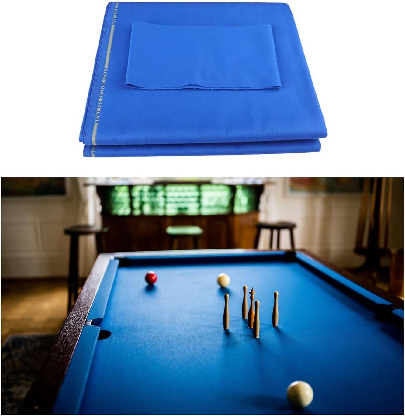 Premium Pool Table Felt for Professional-Grade PerformanceElevate your gaming experience with our Pool Table Felt, designed to deliver unmatched smoothness and made to last.Crafted from premium Billiard Cloth, this fabric ensures a consistent roll and precise ball control, making it good for both casual players and serious enthusiasts.Whether you’re recovering an old table or upgrading your home game room, our Pool Table Cloth offers a professional touch with its tightly woven, fade-resistant material that withstands intense gameplay and frequent use.This Billiard Table Cloth resists pilling, abrasion, maintaining its sleek appearance for years.Its lightweight yet sturdy design allows for easy assemble, and the Pool Felt’s anti-static properties keep dust and debris at bay. For home tables, bars, or clubs, our Billiard Felt combines style and functionality, ensuring your table looks as sharp as it plays.Transform your space into a pro-level arena choose made to last, precision, and elegance with our pool table covering.Specification:Material: Wool & NylonCloth Size: 2.9x1.6 m/9x5 ftEdge Cloth Size: 1.4x0.15 m/ 4x0.5 ftColor: Blue , Blue-gray , Green , Dark green , RedPackage Includes:1 x Billiard Table Cloth6 x Edge ClothKind reminder:1. Daily maintenance involves using a billiard ball brush to brush the billiard ball cloth and remove dust such as chalk powder.2. Every once in a while (depending on the length of time the billiard table has been used), usually a week or half a month, iron the table with a billiard iron to restore the fabric to a flat surface.