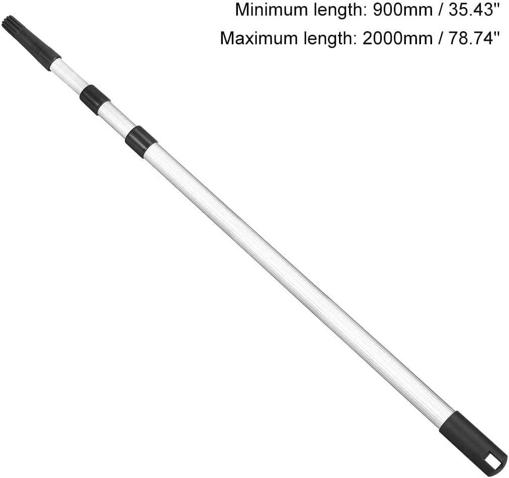 Specifications:Material: Aluminum Alloy, PlasticColor: Silver Tone, BlackMinimum length: 900mm / 35.43"Maximum length: 2000mm / 78.74"Rod Maximum Diameter: 28.5mm / 1.12"Tip Diameter: 22mm / 0.87"Male Thread Diameter: M18Package Contents:1 x Extension PoleDescriptions:1.Made of Aluminum Alloy, plastic handle for easy use, lightweight and durable.2.Easily extends from 35 inch to 79 inch by twisting the rod clockwise/counterclockwise.3.Great for hard-to- surfaces, like high outdoor windows, without the need of a ladder.